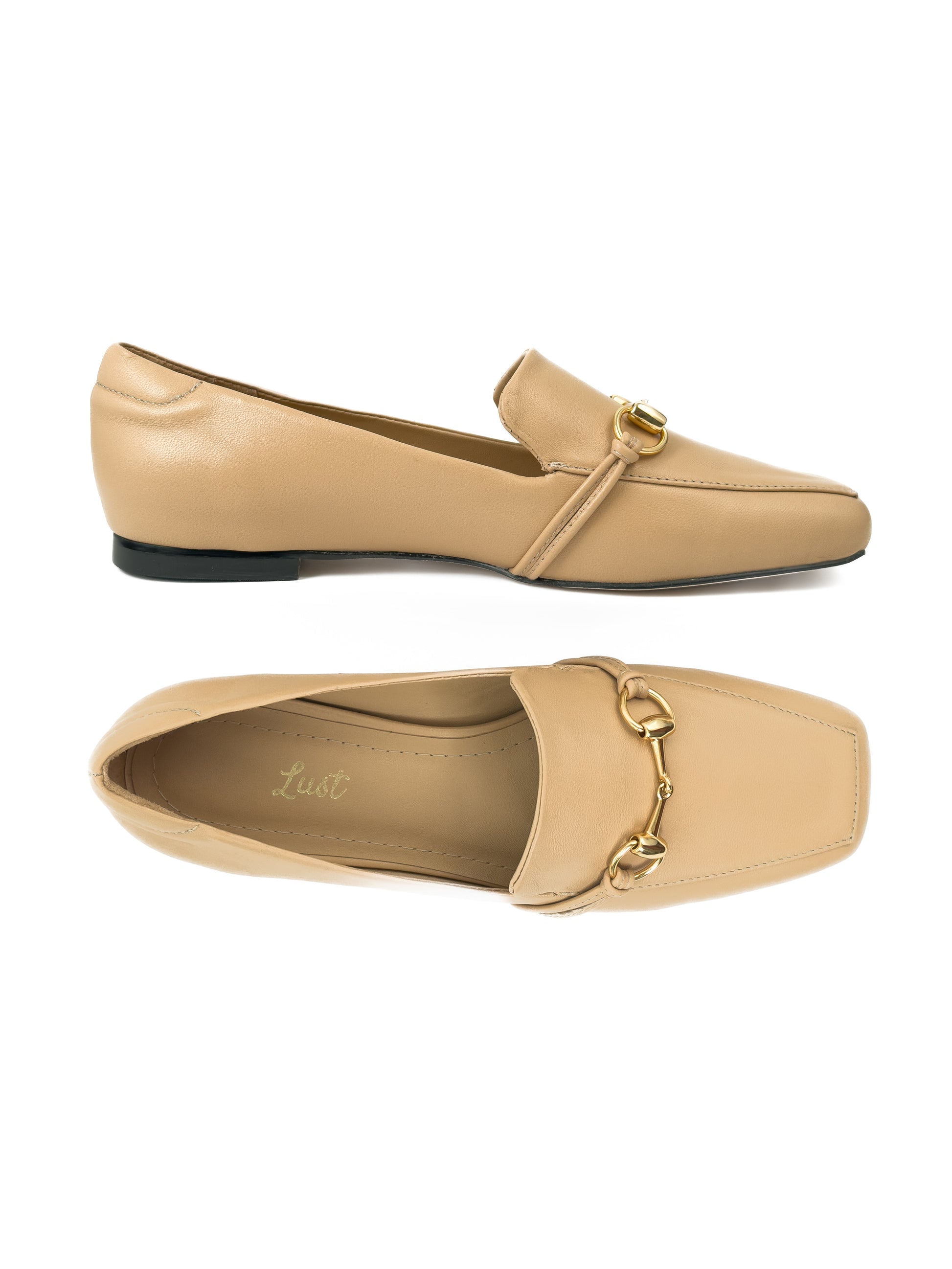 Mocassim Camille em couro legítimo: elegância e conforto em cada passo. Com um design clássico e sofisticado , apresenta bico quadrado e detalhe de bridão dourado que adiciona um toque de requinte.